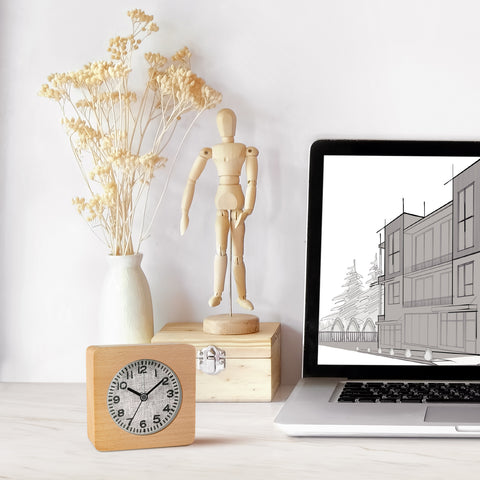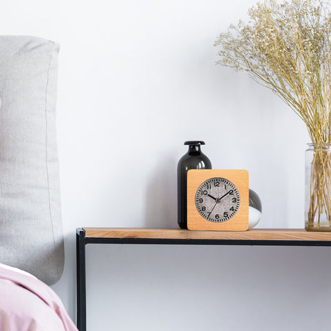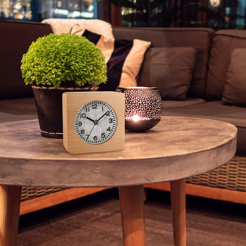 Wachen Sie mit unserem Wecker aus Holz mit geräuschlosem Leinengesicht stilvoll auf!
